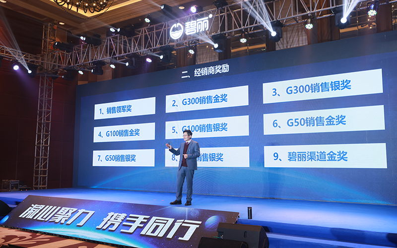 為了回報(bào)各位碧麗家人,答謝廣大終端客戶,2023年碧麗將以更為優(yōu)質(zhì)的產(chǎn)品、心動(dòng)的政策感謝大家的支持,激勵(lì)各位經(jīng)銷商伙伴不斷前進(jìn)。峰會(huì)上,碧麗集團(tuán)公布了2023年?duì)I銷政策、激勵(lì)政策、電商政策,表彰了"銷售冠軍獎(jiǎng)"、"銷售領(lǐng)軍獎(jiǎng)"、"G100銷售金獎(jiǎng)"、"G100銷售銀獎(jiǎng)"等多個(gè)獎(jiǎng)項(xiàng),并頒發(fā)了獎(jiǎng)牌、豪華獎(jiǎng)品以資鼓勵(lì),真正的為經(jīng)銷商帶來(lái)了看得見(jiàn)的實(shí)惠。